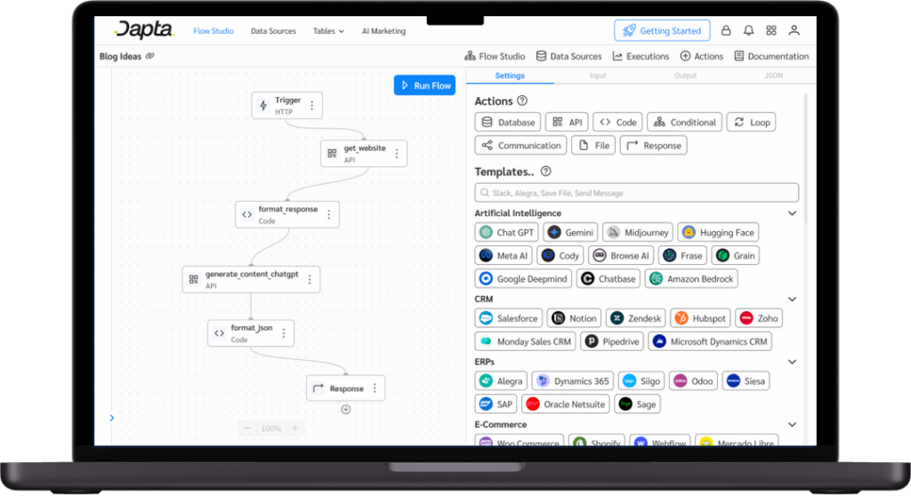 Dapta integrates with a wide range of marketing tools, including CRM systems, email marketing platforms, social media management tools, analytics software, and more. This integration ensures a unified approach to managing campaigns and optimizing marketing efforts.