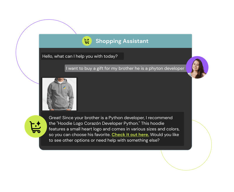 Set up in under 10 minutes in your Shopify or Woocommerce store to provide real-time, personalized support directly on your e-commerce.